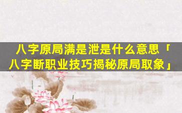 在八字命理中,"泄"是指五行能量的流失八字。原,局。满是泄 🌺 意味着八字命 🐞 局中存在着过多的泄耗五行能量的元素导致命主五行失衡