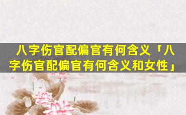 八字 🪴 伤官配偏官 🌵 的含 🦉 义
