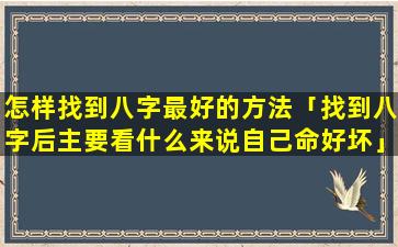看八字确定命好坏 🌿 的主要 🐠 要 🐡 素: