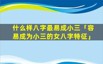我不确定“容易成为小三的女八字特 🐋 征”是什么意思八。卦是中国古代一 🦄 种占卜术我,对。此一无所知