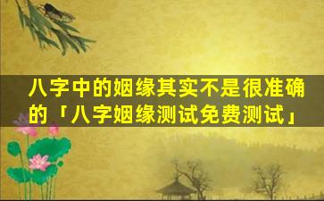 对于“八字中的姻缘其实不是很准确的”这一说法,在命理学界存 💐 在不 🦄 同的观点: