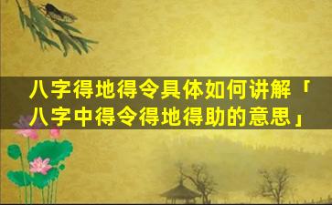 具体讲解八字得地得令的 🐘 具体讲解如下: