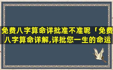 免费的八字算命准不准是一个见仁见智的问 🌾 题,没有确 🦈 凿的答案。