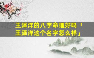 好听易记 🐠 :"王"姓常见 🐈 ,"泽"字,"取"水,泽,丰美之意洋字有宽广阔大的寓意读音响亮顺口容易让人记住。