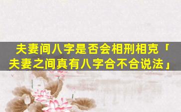 夫 🐴 妻间 🐱 八字是否会相刑相克