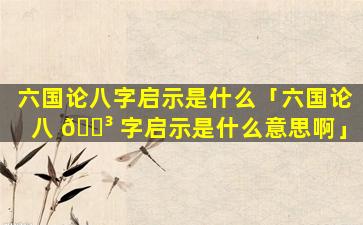 八 🐦 字启示是 🌴 指苏秦在《六国论》中提 🐯 出的八个字: