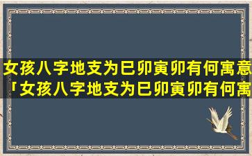 八字寓意:女孩八字 ☘ 地支为巳卯寅卯 🐼 ,寓意如下: