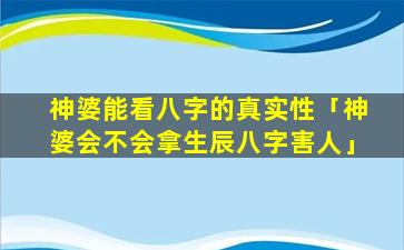 神婆和 🌻 生辰八字是否能害人是一个有争议的 🐱 话题,存在不同的观 🐎 点: