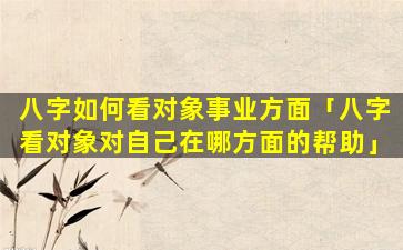 根据八字看对 ☘ 象事业运势