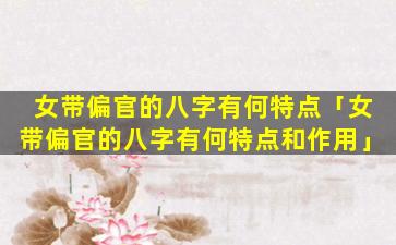 女命 🐵 带偏 🐞 官的 🌼 作用