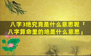 八字术语中,“绝”指两 🐶 种不同的概念: