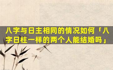 八字中 🌿 日主相同的情 🦁 况