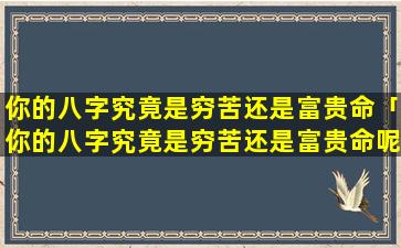 如何判斷 🐕 八字是窮苦 🦋 還是富貴命?
