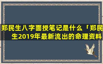 “郑民生八字面授笔记”是八字命理学爱好者和从业者的必备书籍,也是学习和 🐒 研究 🐎 八字命理学的宝贵参考资料。它。受到了广大八 💐 字命理学爱好者和研究者的欢迎和推崇