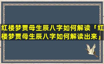 红楼梦中 🌸 贾母的生辰八字