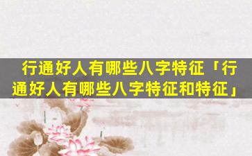 1、行通好人有哪些 🐵 八字特 🌳 征