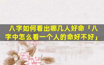 八字 🐼 如何看出命好不好