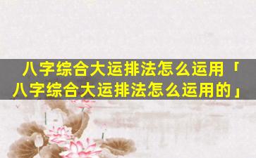 八字综合大运排法是四柱预测术中排定运气的其中一种方法。此法以月柱地支为基准,依,次。推算出每个大运的起始和结束年份并依据五行生克制化规 🦟 律确定每个大运的旺衰喜忌