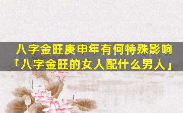 当八 🦆 字金旺之人遇到庚申年时,将产生以下特 🐟 殊影响 🕸 :