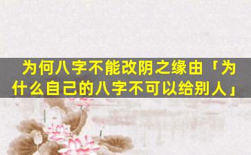 八字理论中并没有"改"阴缘的说法 🐞 ,因"此"不存在八字不能改阴之缘由的说法。