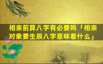 相亲前算八字有必要与否是一个个人选择。尊重传统文化的同时,也,需要。保 🐡 持科 🌼 学 🐒 理性避免盲目的迷信行为