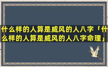 八字格局高大,事,业有 🌼 成气度 🌴 不 🐠 凡。
