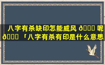 七杀合印:八 🦄 字 🐕 中七杀与印星相合杀印相,生,权力在握。