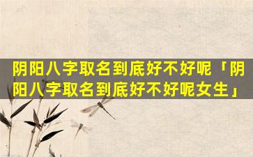 总体来说,阴阳八字取名好不好需要具体情况具体分析。父,母在取名时应理性看待综合考 🐵 虑文化传承、个,性。化和实际需求等因素并避免过度迷信