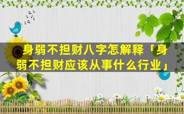 身弱不担财,指,的,是八 🕸 字命理中日主力量弱无法承受财星带来的富贵。适合 🌳 这种命局的行业 🐺 通常具有以下特点: