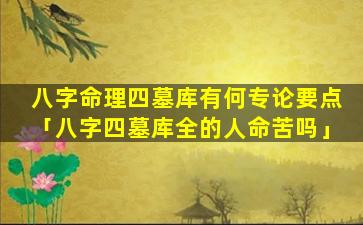 但是,八字 🐎 四墓库全并不一定代表命苦。具。体命理吉凶还需要结合八字中其他因素综合判断