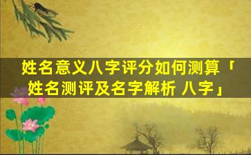 姓名意义八字 🐡 评 🐛 分测算步骤