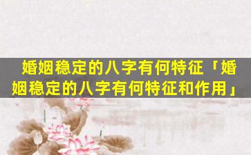 婚姻稳定 🌾 的 💮 八字 🍀 特征
