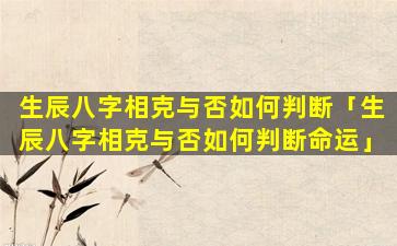 判断 🐅 生辰八字相 🌳 克与否的方法: