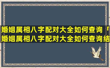 如何 🐝 查询婚姻属相八 🐶 字配对大全结婚: