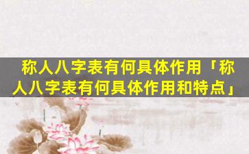 称人 💮 八字表的具体 🦢 作用和 🌾 意义