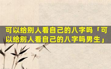 根据传统的中国命理学,是,否可以给别人看 🦈 自己的八 🦉 字取决于不同的观点和信 🐶 仰: