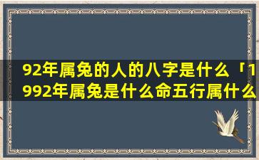 92年属 🐝 兔人的八字