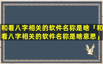 与八字相关 🌴 的软件名称可 🐟 能会包含以下含义: