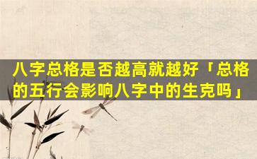 八字总格的高低并不是判断一个人运势好坏的唯一标准。需。要结合其他 💮 五格以及八字格局综合分析才能得出较为准确的结论