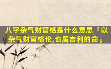 也属吉利的命:杂气财官格虽然格局较低,但,仍然属,于 🦅 吉祥之命主富 🦆 贵生活无忧。