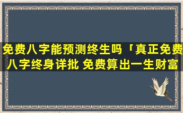 请注意,真正免费且准确 🐵 的八字终身详批和一生财富预测是不存在的。声。称提供此 🐎 类服务的网站或应用程序通常旨在收集您的个人信息以进行营销或诈骗目的