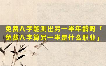 八字可以用来推算一个人的性格 🦊 、婚、姻事业等 🐦 信息,但不具备精确推算出 🐈 另一半年龄的能力。