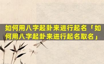 如 🌷 何用八字 🌳 起卦来进行起名 🍁 字