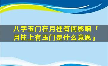 玉 💐 门代表金钱、财库,在,日,柱出现表示命主财运旺盛一生不缺钱财。