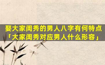 适合娶大家闺秀 🦢 的男人八字特 🐼 征 🐱 :