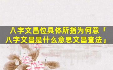 文昌 🐯 星 🌳 在八字中的 🌷 影响