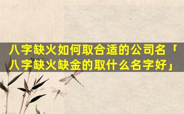 适合命里缺 🌻 火的公司名取名建议 🐟 :