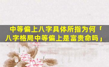 中等偏上是一个模糊的术语,表,示 🦆 ,某人八字中整体格局 🐳 较好但又有不足之处导致其命运不会达到最高水 🐘 平。