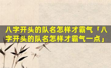 霸气 🐠 十足的“八字 🌲 开头的 🐦 队名”
