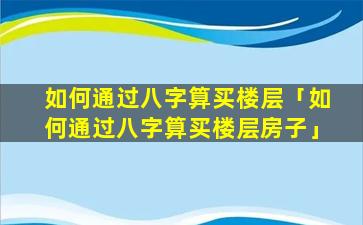 八字算命是一种中国传统命理学,通,过出生年月日时计算出一个人的八字从而推断其运势和吉凶。根,据八字。也可 🦉 以预测适合的买房楼层